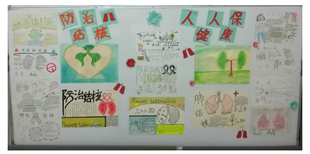 同时在学生中开展结核病宣传手抄报比赛,并选取优秀作品于24日前后在校园内进行张贴,营造良好的结核病知识宣传氛围。