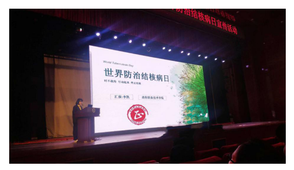 3月24日上午,我院18级大专药学2班李凯同学代表我校参加洛阳市结核病防控日的活动,在河南科技大学进行结核病知识宣讲。