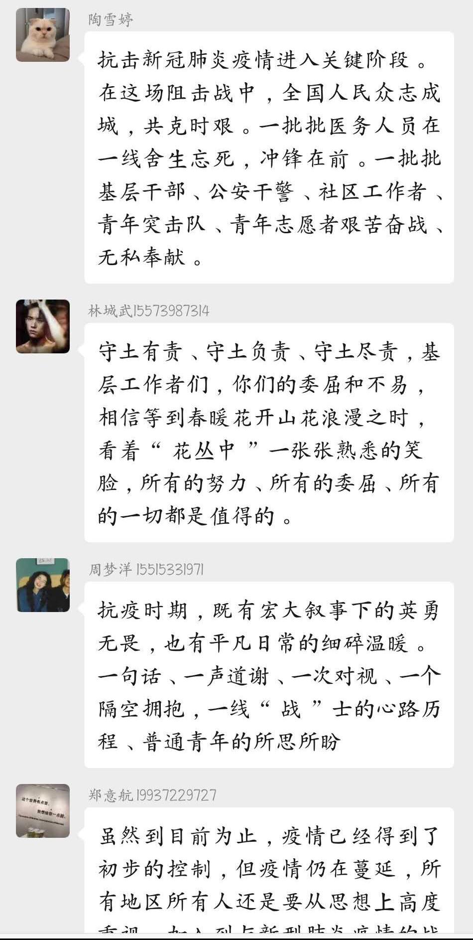 在疫情面前,每位洛职人都要坚定信心、共克时艰,我们要始终坚定地走在抗疫路上,不忘初心于使命,勇于担当,为疫情防控贡献青春力量,相信我们必能夺取疫情斗争的最终胜利,让我们期待冬去春来在洛职校园再次相逢。
