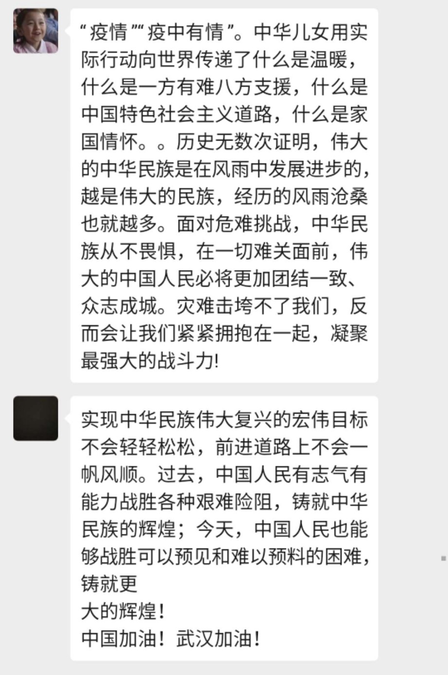 通过四位高校马克思主义学院的资深教授结合四门必修课,对于疫情防控深入浅出的解读,师生纷纷表示受益匪浅,深刻的感到了少年兴则国兴,少年强则国强。奋斗是青春最靓丽的底色,我们定会在这场战“疫”中贡献自己青春力量,坚定党和国家的领导,争做有理想、有本领、有担当的时代新人。