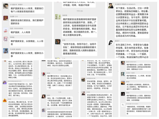 团课中,各班团支书组织同学们共同观看由CCTV12《生命线》栏目播出的《汇聚人民力量,维护国家安全》专题片,并通过微信群等方式展开了讨论和发言,同学们纷纷表示,今后要牢固树立国家意识、树立国家利益高于一切的观念,维护国家安全意识,要做爱国主义的坚定践行者,为维护国家安全贡献智慧和力量!