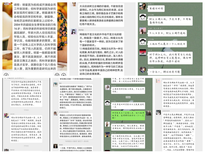 班会中通过近期的一些时事热点和相关报道,向同学们讲述关于“网红现象”的两面性。一方面,“网红现象”中存在着正能量,对大学生的发展有着积极作用。而另一方面,作为一种新兴的潮流现象,很多“网红”被过度包装进行炒作,向大学生传递的一种“做网红比读书更有用”的错误价值观,造成了极大的负面影响。同学们对此也进行了激烈的讨论。同时,也呼吁同学们在校就应扎扎实实、认认真真地学习好本领,练好基本功,使自己成为理想远大、热爱祖国、德才兼备的人!