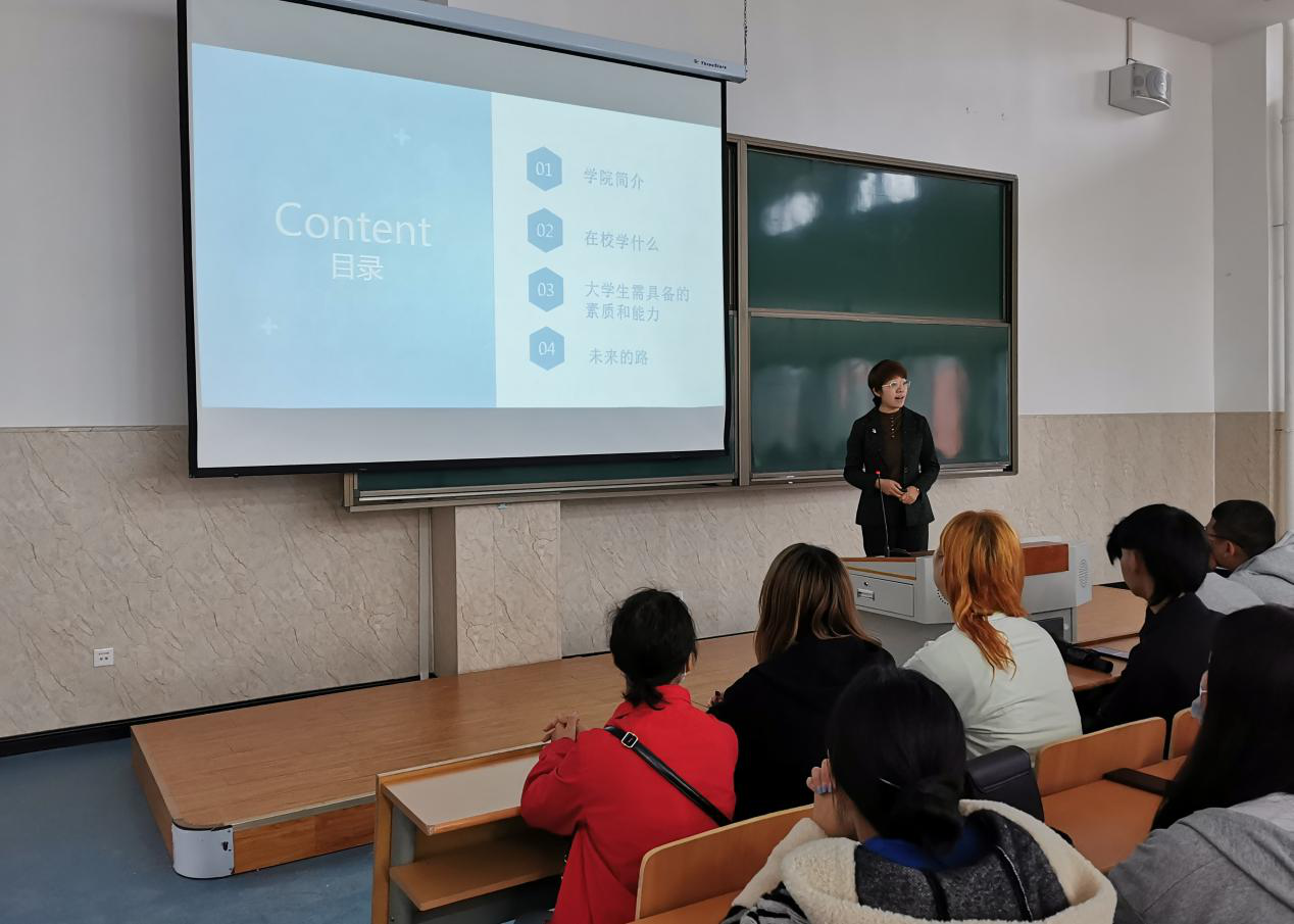 院长董均分别针对不同专业向同学们介绍了专业设置、培养体系、校企合作、就业前景等方面的内容,并叮嘱同学们要树立远大目标,端正学习态度,扎实学识本领,追求个人发展。随后,各专业老师分别介绍了药学、食品营养与检测、食品加工技术、宠物诊疗、宠物养护等专业的特色,人才培养模式,课程设置,师资团队,实训条件,就业前景,行业发展现状等基本情况;同时还向同学们传授了大学学习的方法,建议大家要充分利用大学时光,科学规划个人的职业生涯,不断提高专业技能,努力提升自己的综合素质。