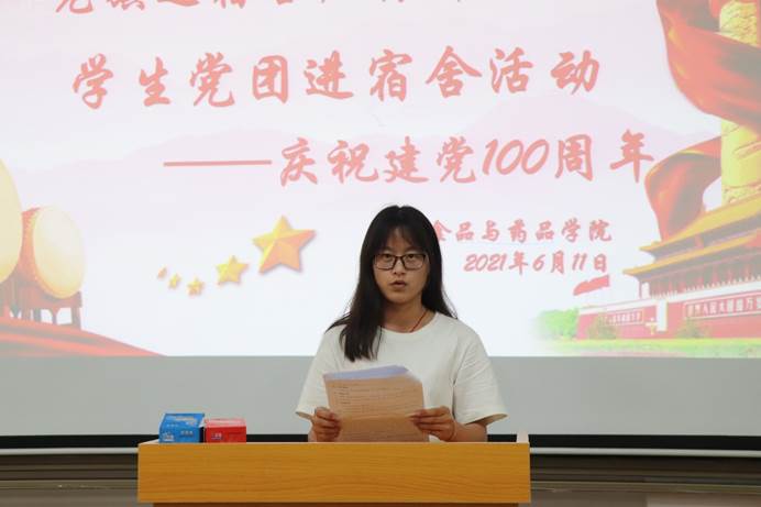 首先由学生会主席张艺景宣读“党旗进宿舍,榜样暖人心”活动方案,学生党员代表左佳茜、入党积极分子代表陈佳欣就工作职责、工作态度和工作决心进行发言。