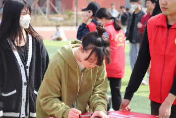 下午一点,我院师生在操场开展了雷锋学习月启动签名活动。签名活动中,师生们踊跃地在印有“迎建团百年,扬志愿新风”的横幅上签名,为践行雷锋精神写下了庄严的承诺。
