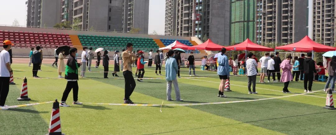 采样期间同学们积极配合防疫工作,自觉佩戴好口罩,不扎堆,不聚集,保持1米安全距离,确保此次核酸检测工作圆满完成。