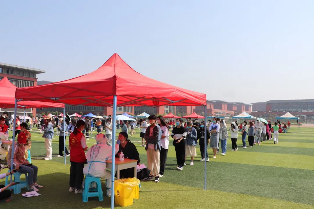 本次核酸检测地点设在操场,我院学生按照规定的检测时间,分批错峰到达采样现场,整个过程井然有序。