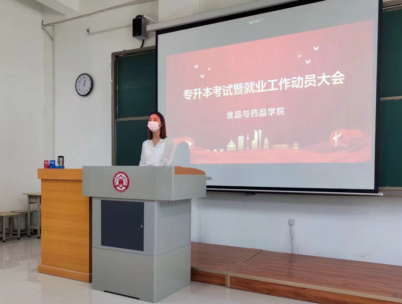 6月6日,食品与药品学院在2号教学楼111教室开展19级学生专升本考试暨就业工作动员大会,院长兼党总支书记董均,党总支副书记张俊峰,专职辅导员张凯奇、柴雪莹,以及学院66名专升本考试学生参会,会议由学工办主任何思源主持。