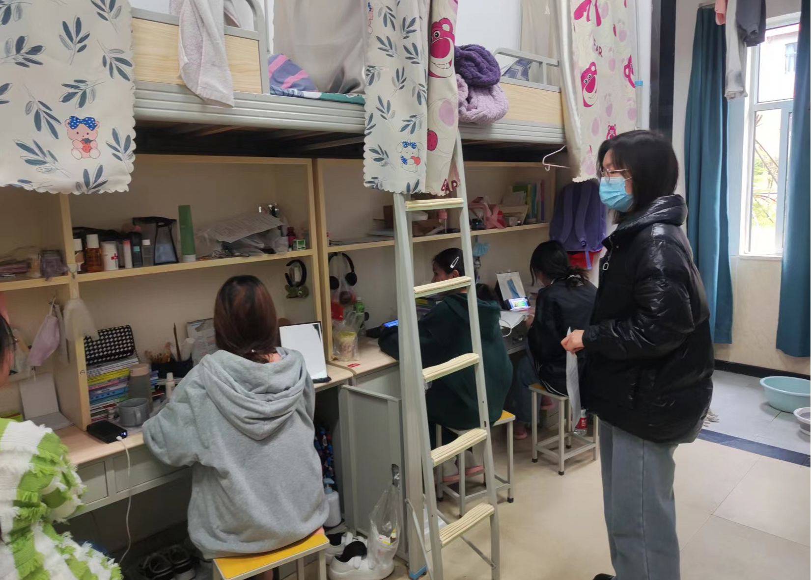 在学生离校后,李嘉琛、柴雪莹等辅导员老师深入学生宿舍,逐个检查离校学生寝室安全和卫生情况,对未切断电源、未关闭门窗等存在的安全隐患问题进行及时处置,切实做好学生离校后的寝室安全工作。