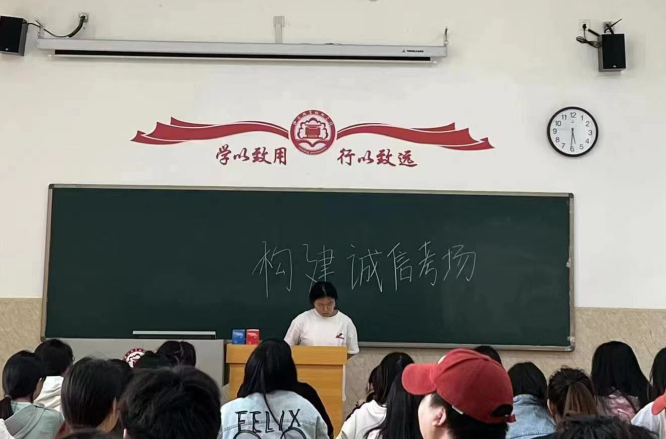 此次诚信教育活动主要以主题班会的形式开展,各班班长向同学们认真讲解关于考试作弊的深远危害,并以实际案例告诫同学们务必严守考试纪律,诚信做人。会后,同学们签订了诚信考试承诺书。