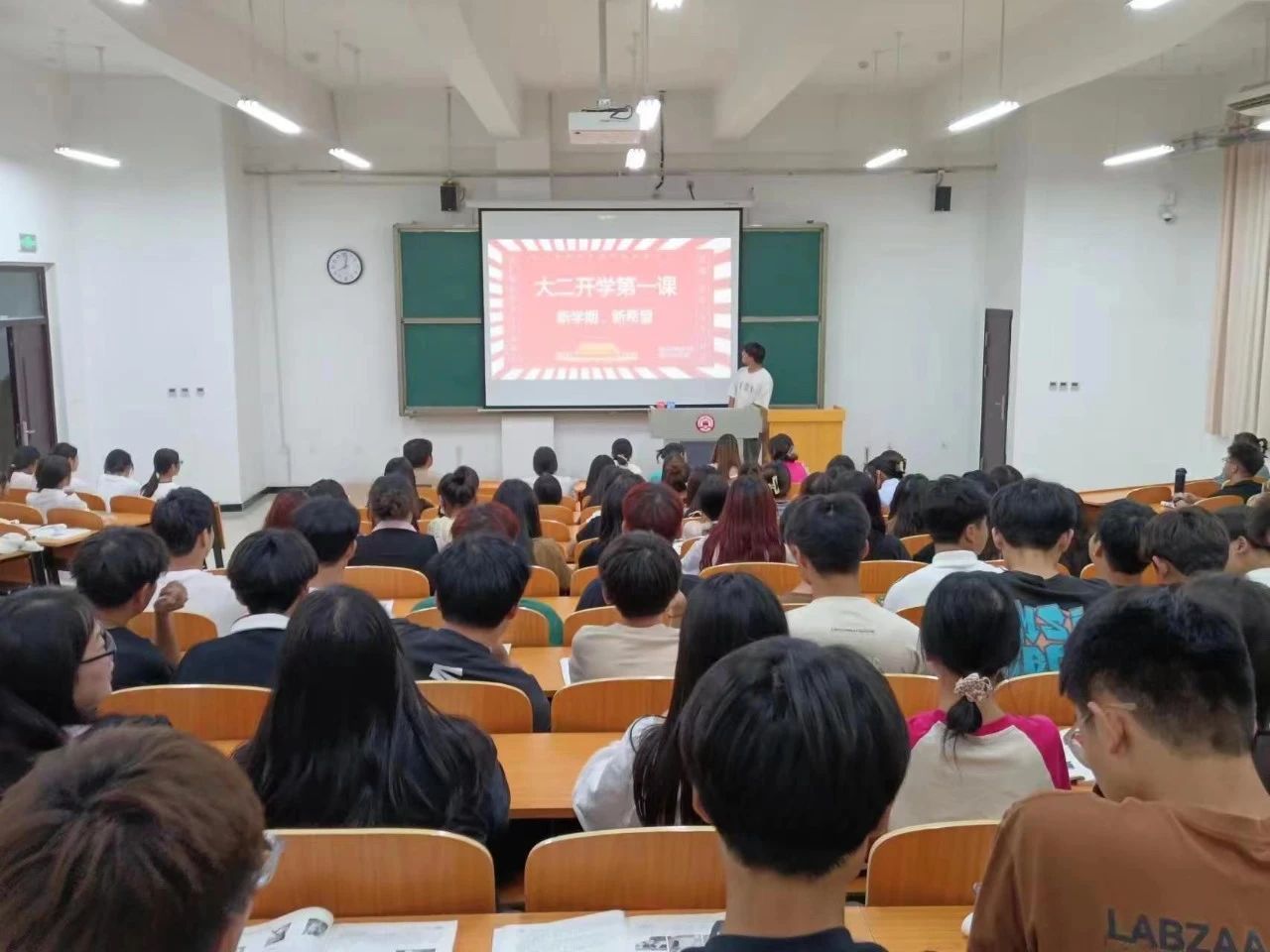 团课上,在团支书的带领下,各班同学回忆自己的假期,互相分享暑期趣事。团支书讲解到新学期是新的期盼、新的希望、新的征程、新的收获,我们应该以崭新的姿态和饱满的精神,在新起点上赢得胜利,续写新的篇章。食药学子纷纷定下自己的目标,表示要用行动证明自己,高昂激情的氛围充满了整个教室。