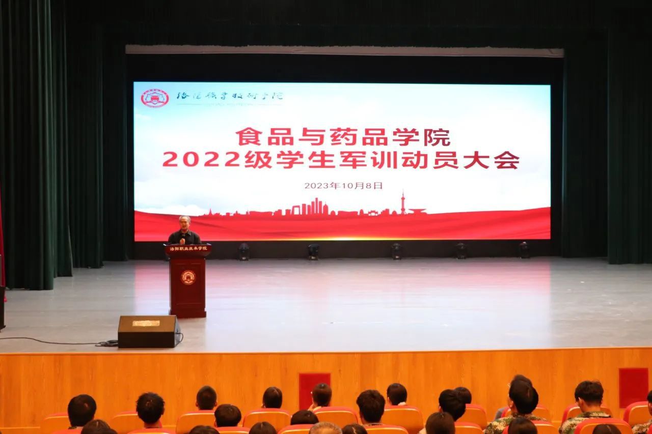 金风送爽,丹桂飘香。为培养2022级同学的国防意识,培养其组织纪律观念的自觉性,使他们能够更快更好地融入军训生活,磨砺自身意志,10月8日下午,食品与药品学院在戏曲与艺术学院大剧场召开了2022级学生军训动员大会。学院党总支书记李红卫、党总支副书记兼副院长张贺伟、党总支副书记张俊峰、学工办主任张凯奇、团总支书记魏笑、辅导员及全体2022级学生参加此次会议。