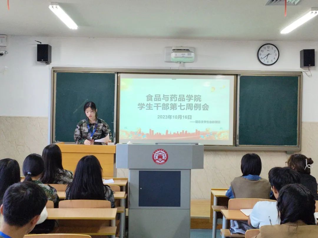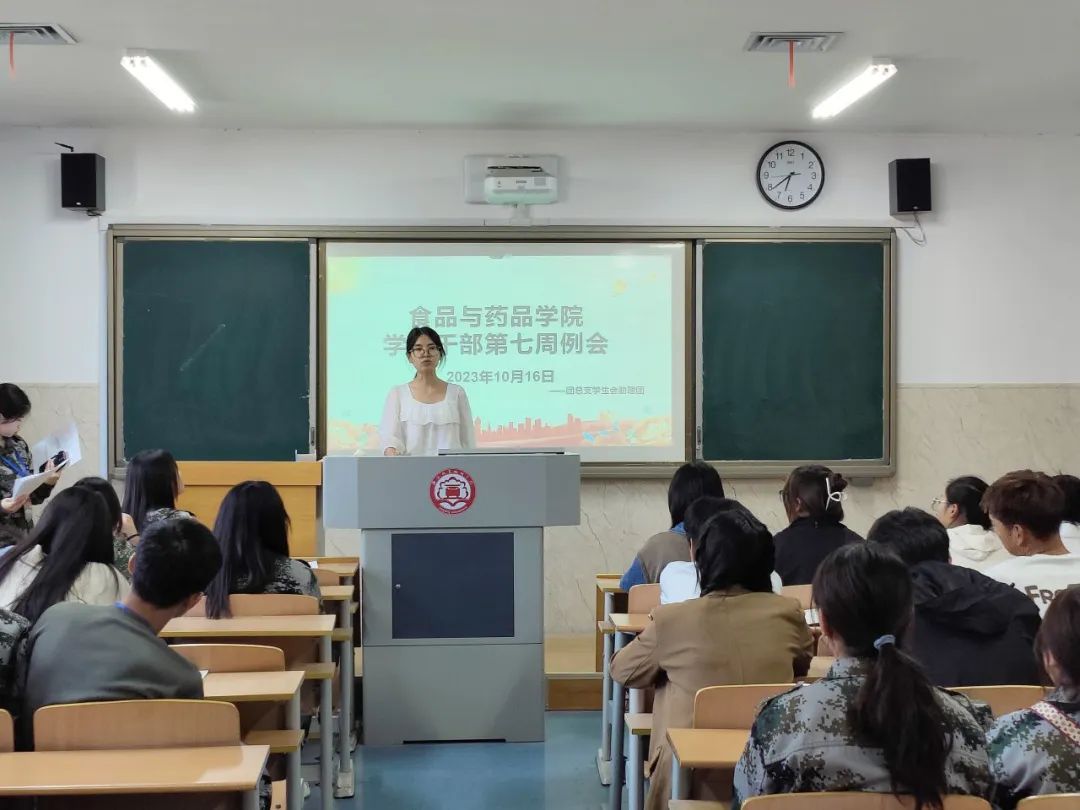 为提升我院学生干部能力,增强学生干部思想凝聚力,食品与药品学院于10月16日在7号实训楼310教室召开了团总支学生会学生干部例会。食品与药品学院团总支书记魏笑、学生会主席团成员及各部门负责人参加本次会议。