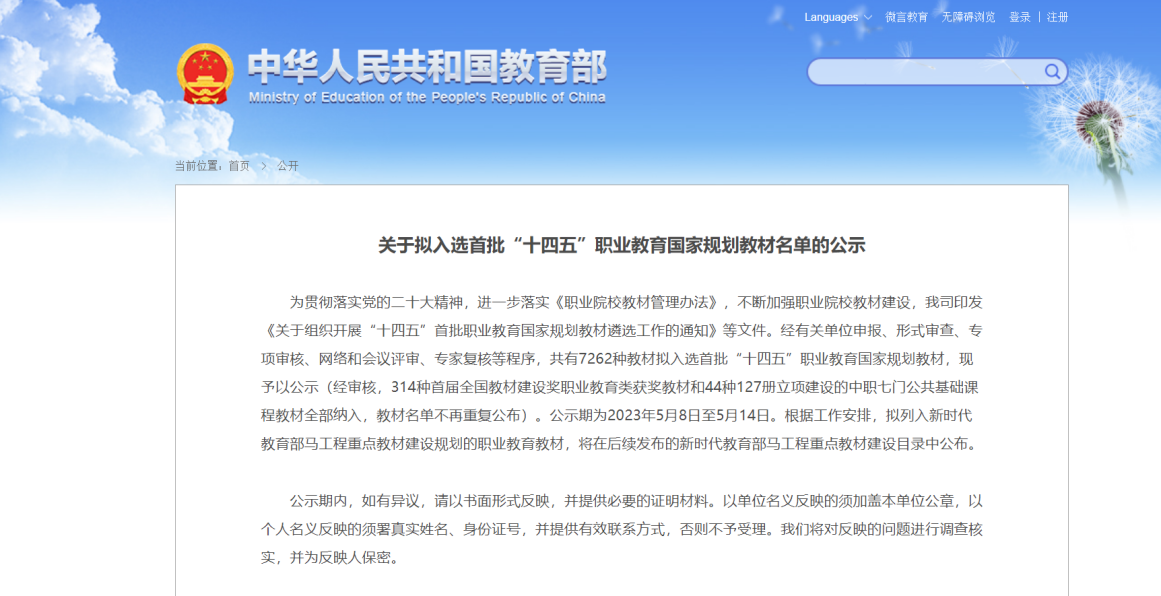 近日,教育部职业教育与成人教育司发布《关于拟入选首批“十四五”职业教育国家规划教材名单的公示》,农业农村部科技教育司发布《关于拟入选首批农业农村部“十四五”规划教材书目教材名单的公示》。我院教师主编2部教材分别入选。