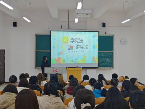 11月30日,食品与药品学院开展了“学宪法,讲宪法”主题班会。班会上,由各班班长带领同学们深入了解什么是宪法、宪法的地位以及宪法如何为我们的一生保驾护航,了解国家宪法日的由来、设立目的以及意义,呼吁同学们弘扬宪法精神,增强宪法意识,做到知法、懂法、守法,为营造安全稳定和谐的社会环境贡献出自己的力量。