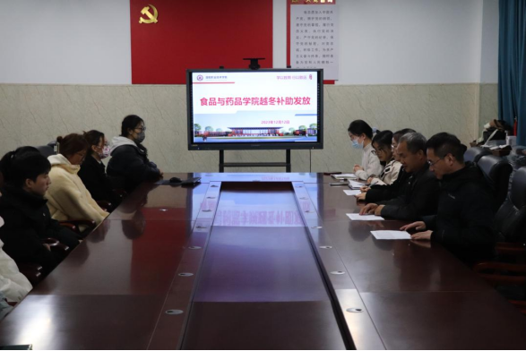 “温暖过冬,关爱同行。”为落实国家资助政策,解决贫困学生实际问题,食品与药品学院于12月12日中午在7号实训楼317会议室举行了2023年越冬物资发放仪式。食品与药品学院党总支副书记兼副院长张贺伟、党总支副书记张俊峰、学工办主任张凯奇、团总支书记魏笑、辅导员柴雪莹及受助学生参加了此次会议。