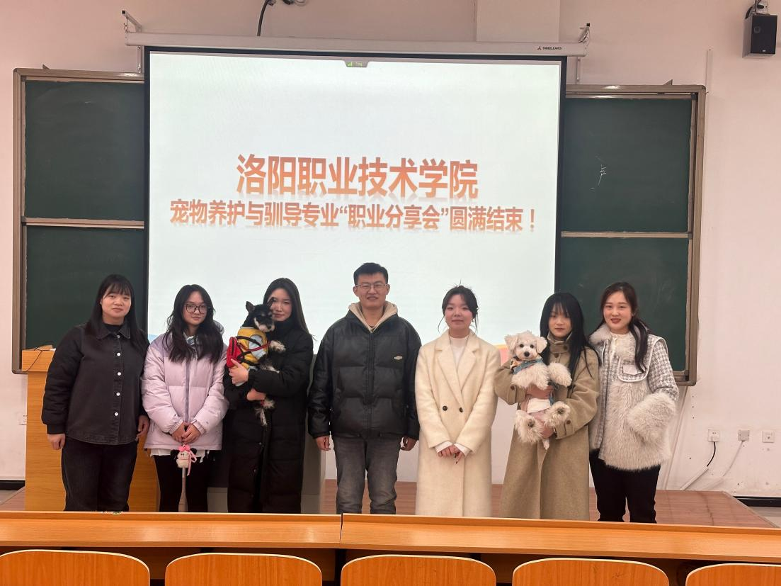 12月20日上午,由食品与药品学院主办、派多格宠物学院承办的宠物养护与驯导专业的就业分享会在4号教学楼113教室成功召开。食品与药品学院宠物养护与驯导专业教研室主任毛福超、派多格宠物学院教师高张伟、毕业学生代表及22级宠物专业学生代表参加了此次活动