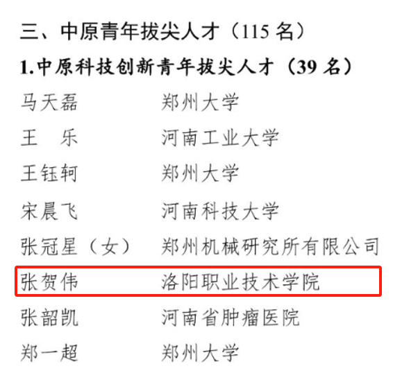 喜报!食品与药品学院张贺伟博士入选“中原科技创新青年拔尖人才”