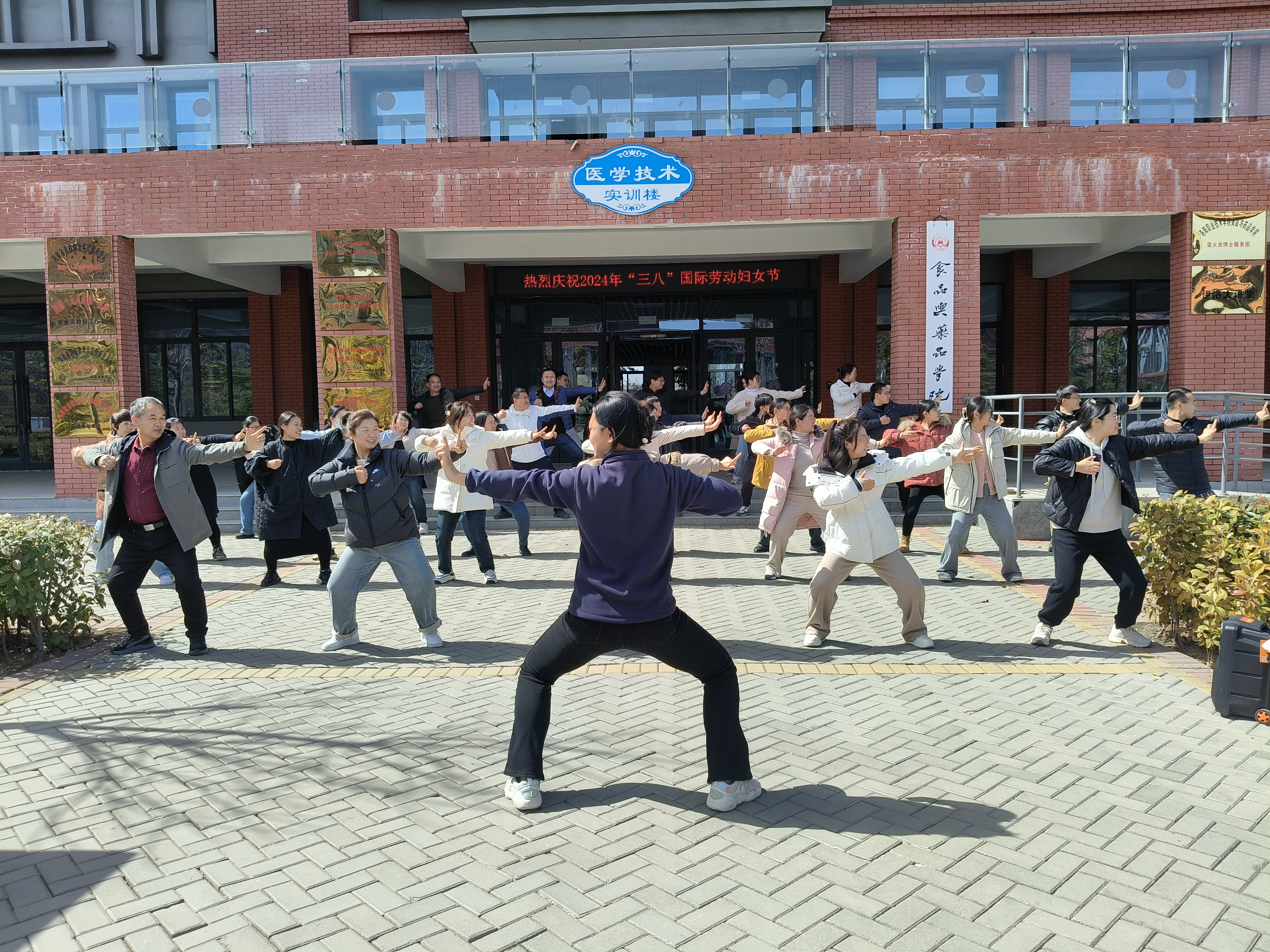 3月7日下午,为庆祝第114个“三八”国际劳动妇女节,增强学院教职工的强身健体意识,进一步弘扬中华民族优秀传统文化,食品与药品学院分工会开展了“爱教育,始于爱自己”的八段锦运动锻炼。