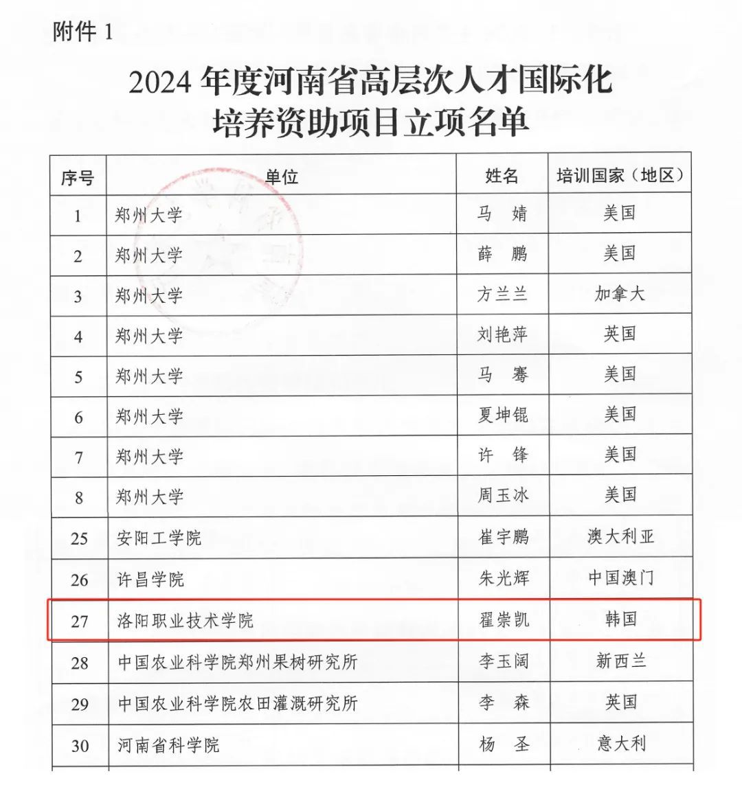 近日,河南省科技厅公布2024年度河南省高层次人才国际化培养资助项目立项名单,食品与药品学院教师翟崇凯成功入选。