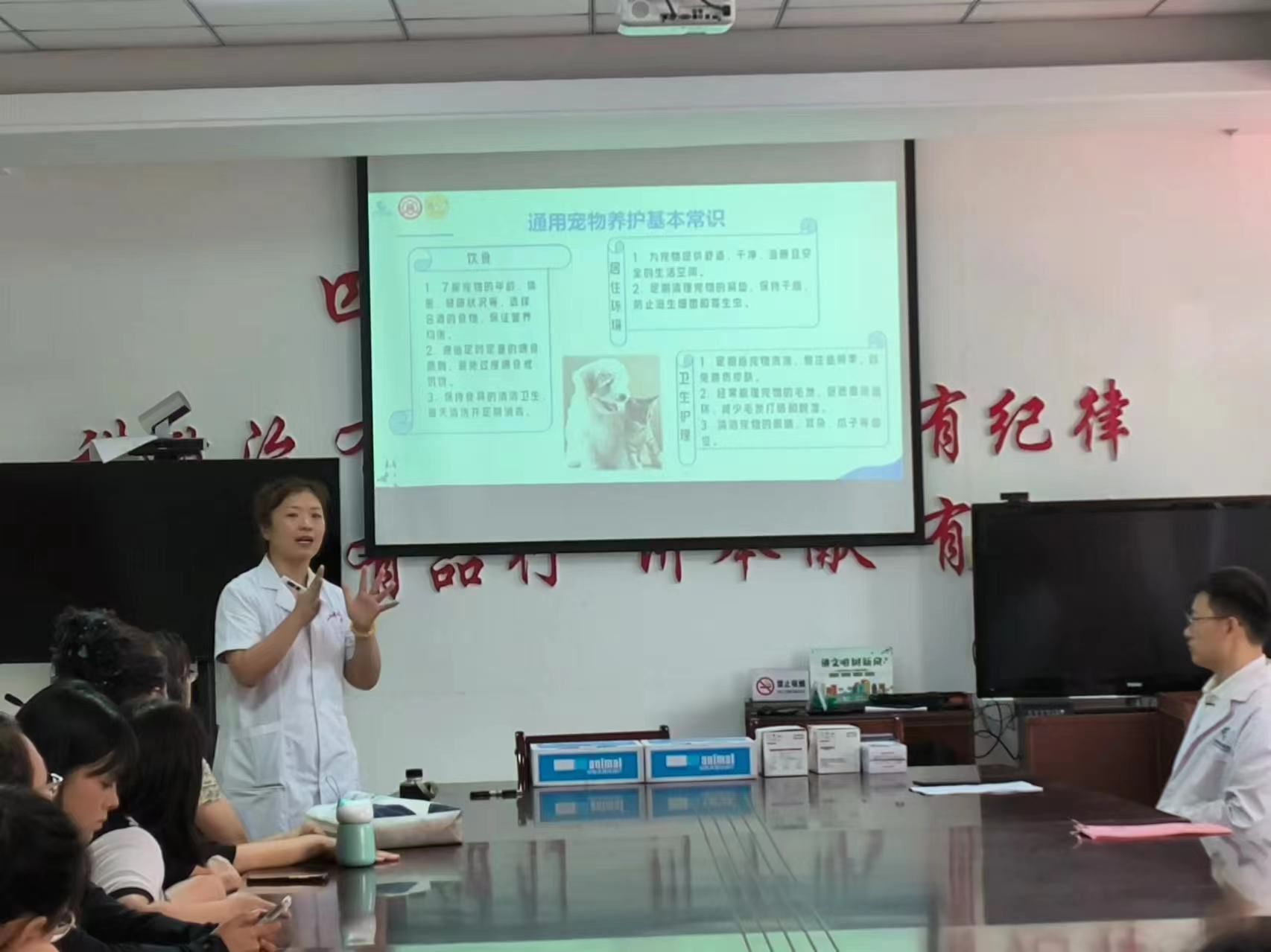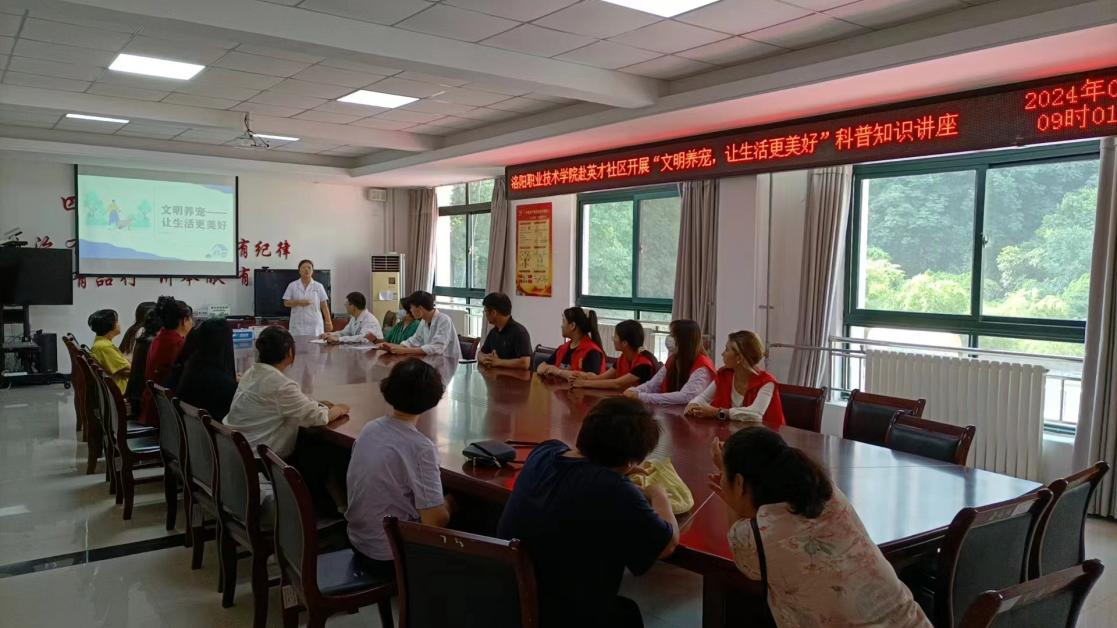 活动现场,宠物专业教师王聪慧首先为居民们详细讲解了宠物的饲养知识,包括宠物的饮食营养、常见疾病预防、疫苗接种等方面。通过生动形象的图片和案例,让居民们对如何科学养宠有了更深入地了解。随后,洛职爱宠联盟社团的志愿者们通过现场互动的方式,解答了居民们在养宠过程中遇到的各种问题,并免费提供宠物体检卡、驱虫项圈和狂犬疫苗接种名额各20份。