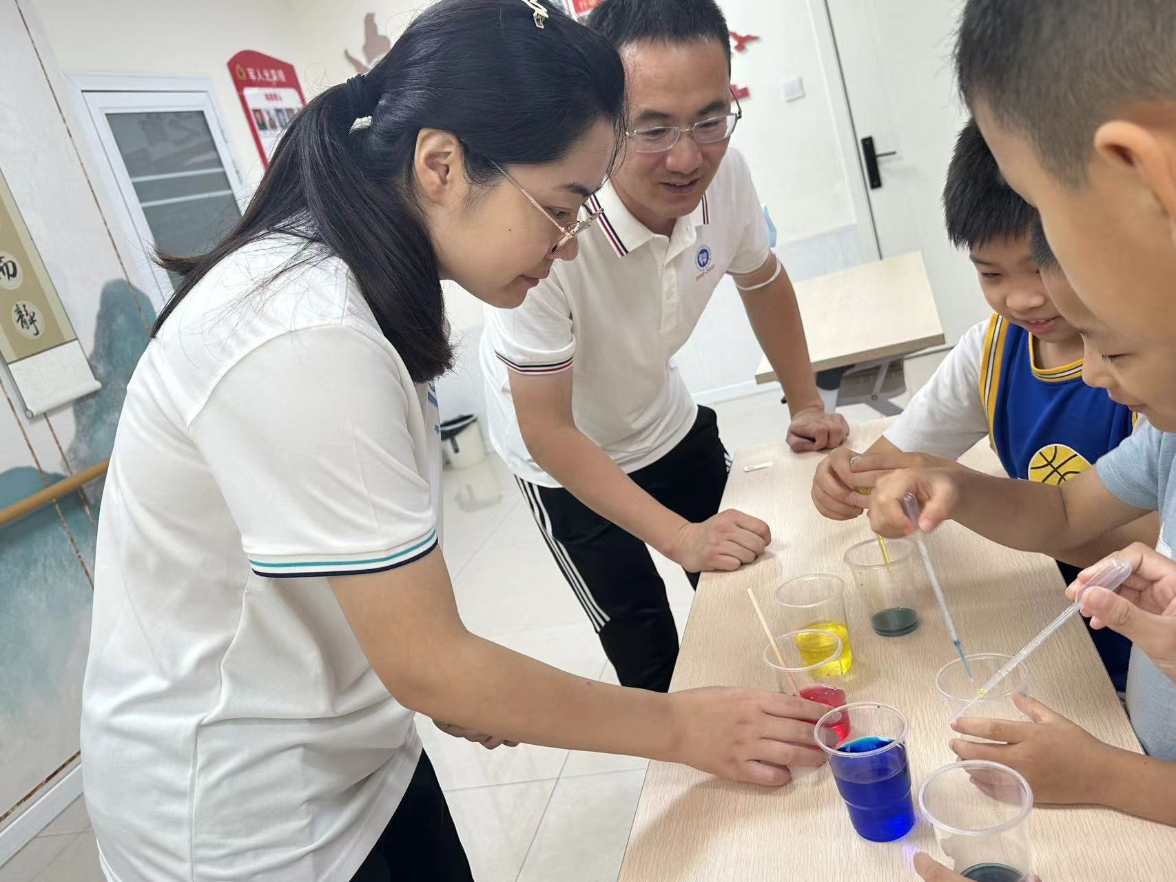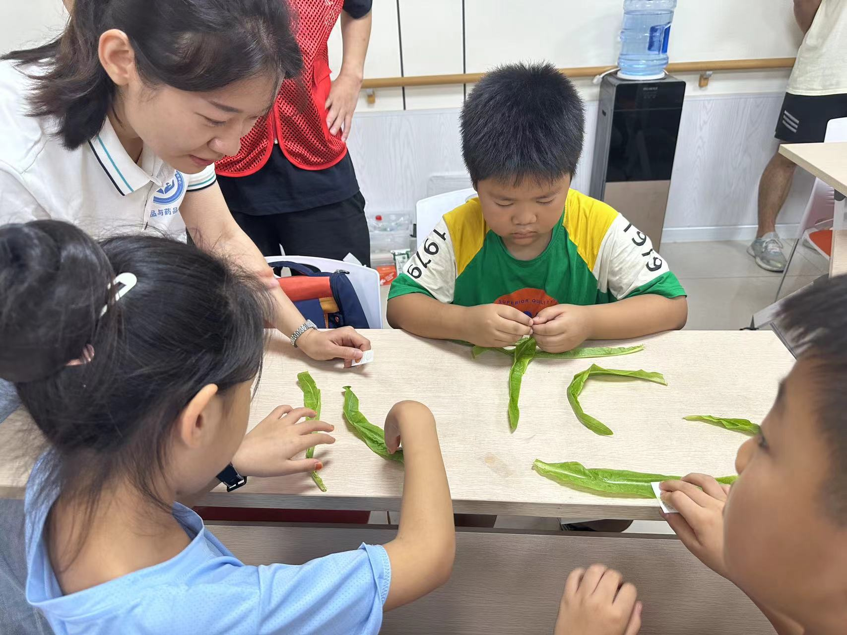 随后,谷玉娟分别从食品安全的重要性、常见的食品安全问题、增强食品安全意识以及合理营养均衡膳食四个方面进行了深入浅出的讲解。宣讲过程中,在讲解农药残留、色素、汽水可乐类食品的安全问题时,设置了互动科学实验,孩子们积极参与,现场气氛活跃。大家亲身体验了蔬菜农药残留快检、色素调配等科学实验,同时“萤火虫”博士服务团成员向小朋友详细讲解了实验原理。