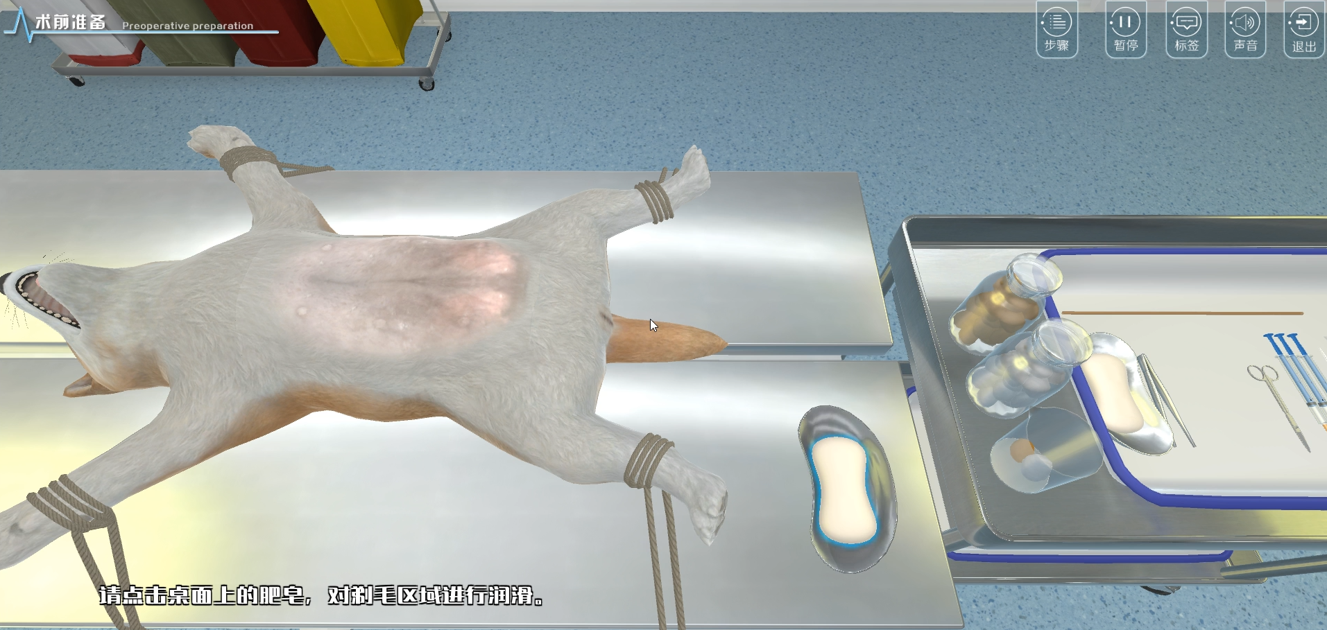 动物术前准备:进入实验场景完成实验步骤。