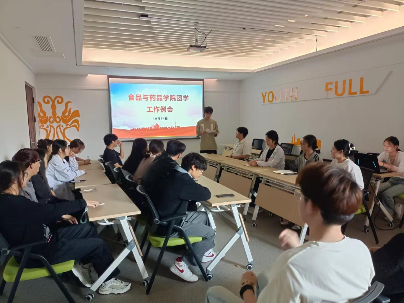为加强学生干部队伍建设,助力学院工作全面发展,食品与药品学院团总支启动了招纳新成员工作。通过两轮纳新竞聘,顺利为学院团学工作队伍又注入了新鲜的血液。10月14日,在学院团总支的组织下,第四次团学工作例会在学院青年之家顺利召开,旨在欢迎团总支及学生会新成员的到来,通过交流和探讨使学生们更好地认识自身职责,以身作则,为同学们树立起良好的榜样。