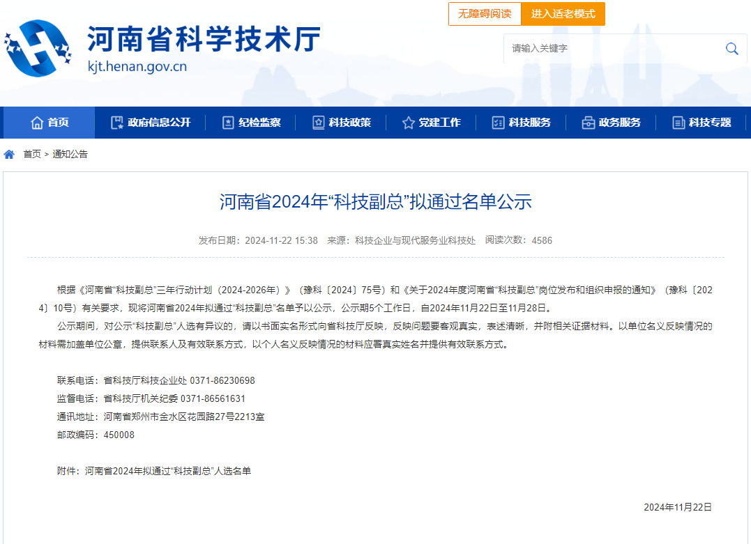 近日,河南省科技厅公布了河南省2024年“科技副总”拟通过名单。食品与药品学院薛超辉、谷玉娟和席鹏三位博士成功入选。
