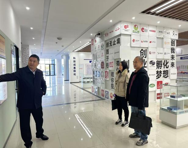 11月28日,张俊峰一行到漯河食品职业工程大学进行交流学习。在漯河食品职业工程大学科技处处长等人的陪同下,张俊峰一行参观了漯河食品职业学院图书馆、“产学研转创”成果展示厅、食品加工中试基地、中原食品实验室等区域。