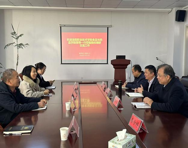 座谈会上,漯河食品职业大学副校长樊明涛对张俊峰一行的到来表示热烈欢迎,并就学校的办学情况、专业建设、“产学研转创”融合发展的特色办学模式等方面进行了详细的介绍。张俊峰对漯河食品职业大学的热情接待表示感谢,并简要介绍了我院的基本情况,希望双方能够强化交流沟通,互鉴有益经验,携手共促发展。