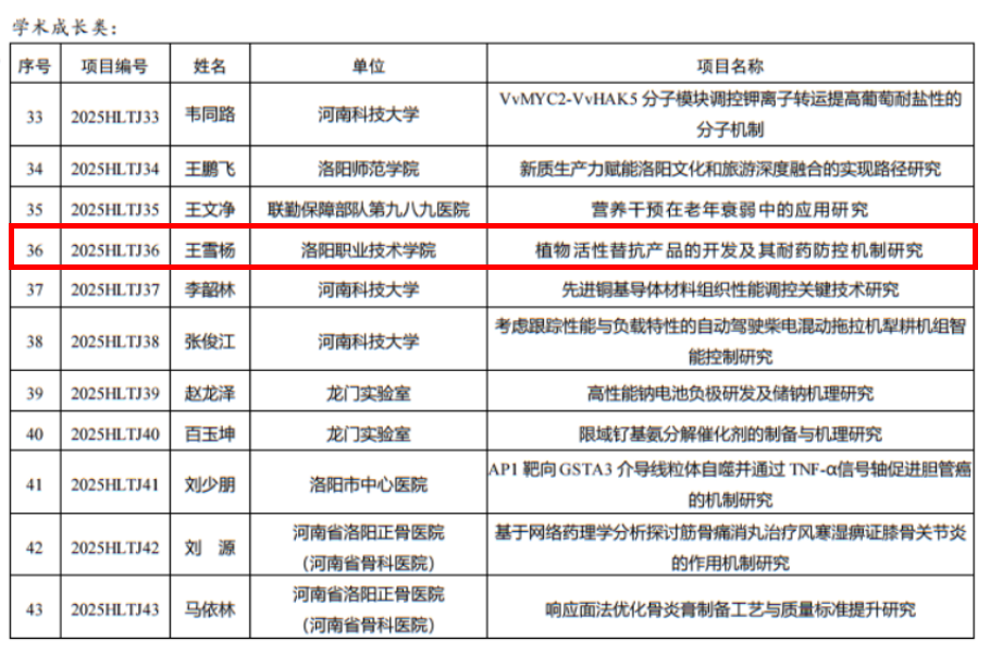随着第四届河洛青年人才托举工程推进,王雪杨博士入选为食品与药品学院的学科建设与科研发展注入了强劲动力。学院将以此为契机,进一步整合科研资源,搭建校企合作平台,推动更多科研成果转化落地,为洛阳现代医药与食品产业的高质量发展提供人才支撑与技术保障,助力学院在“双高”建设道路上迈出更坚实的步伐。