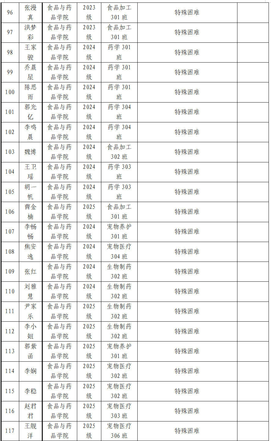 食品与药品学院23级、24级、25级学生家庭经济困难认定公示: