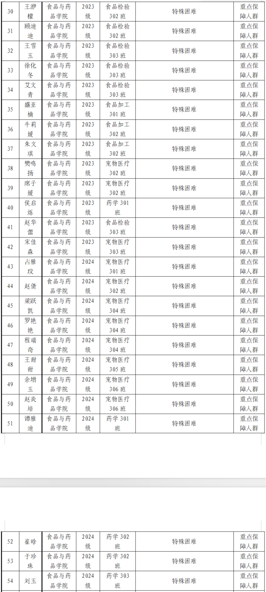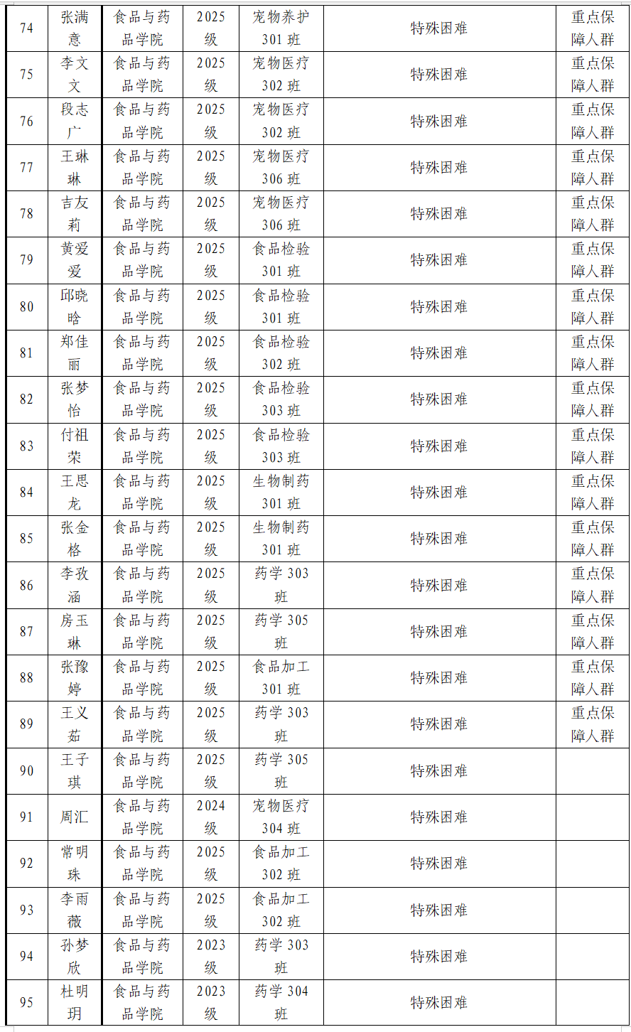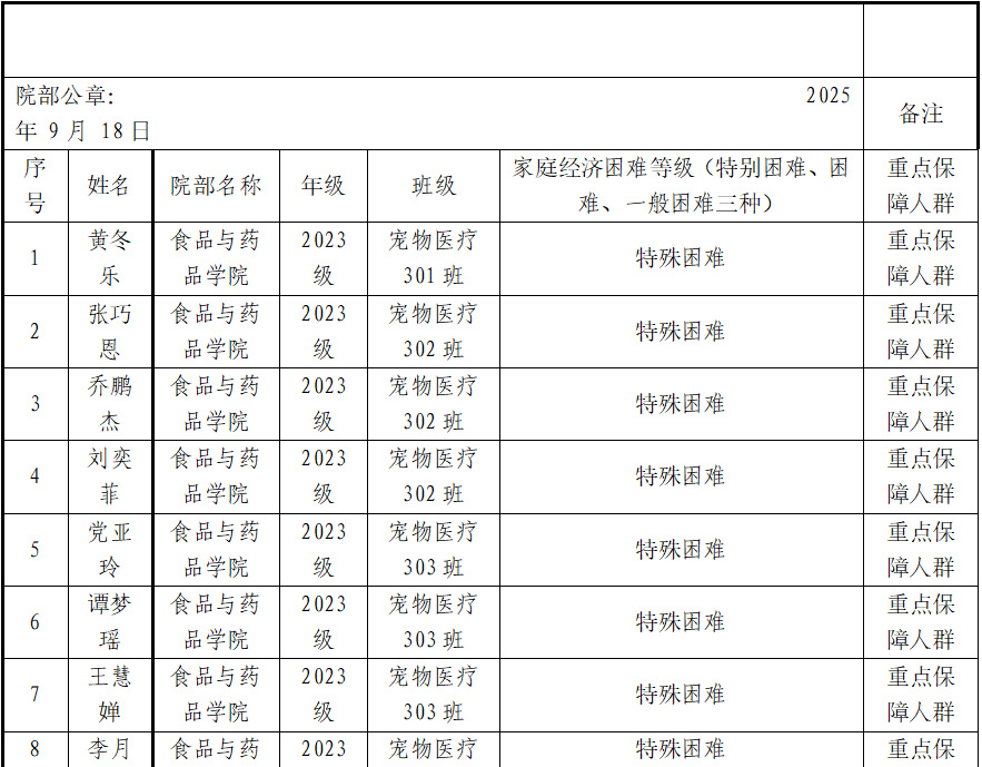 食品与药品学院|2025—2026 学年本专科家庭经济困难学生认定名单公示