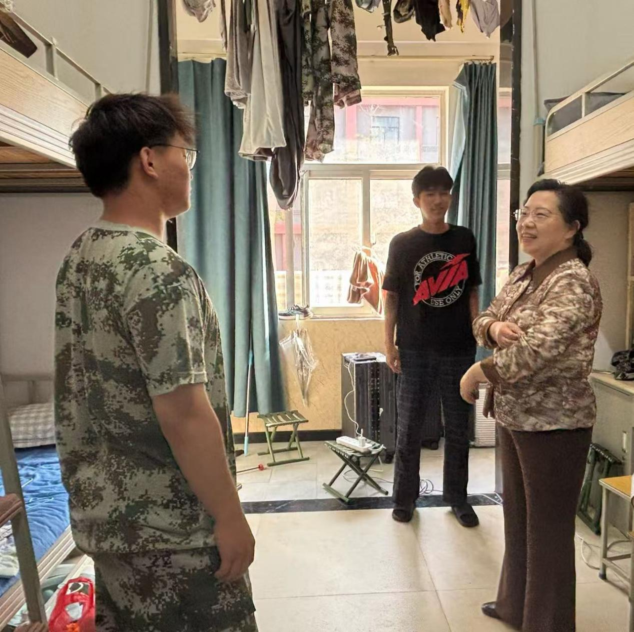在宿舍走访中,李东红细致检查硬件设施与安全通道畅通情况,重点检查了是否存在违规使用大功率电器、私拉乱接电线等安全隐患。每到一间宿舍,都与学生亲切交流,叮嘱大家国庆假期外出时要注意交通安全,做好个人防护,离开宿舍前务必断电锁门,确保人身和财产安全。
