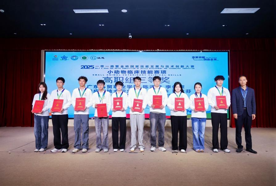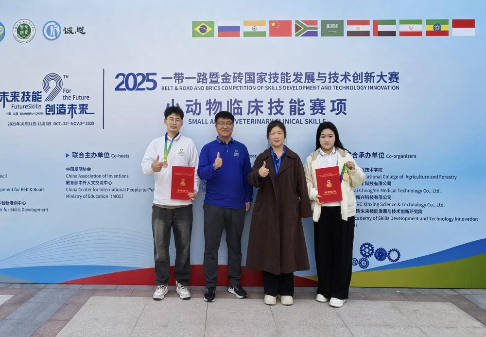 11月3日,“一带一路暨金砖国家技能发展与技术创新大赛”小动物临床技能赛项落幕。作为金砖国家框架下重要国际赛事,大赛聚焦小动物临床专业能力,吸引全国多所院校兽医相关专业学子竞技,规格与行业认可度高。我院学生杨田雨、甘亦婷凭借过硬专业素养与综合实力,最终荣获该赛项三等奖。