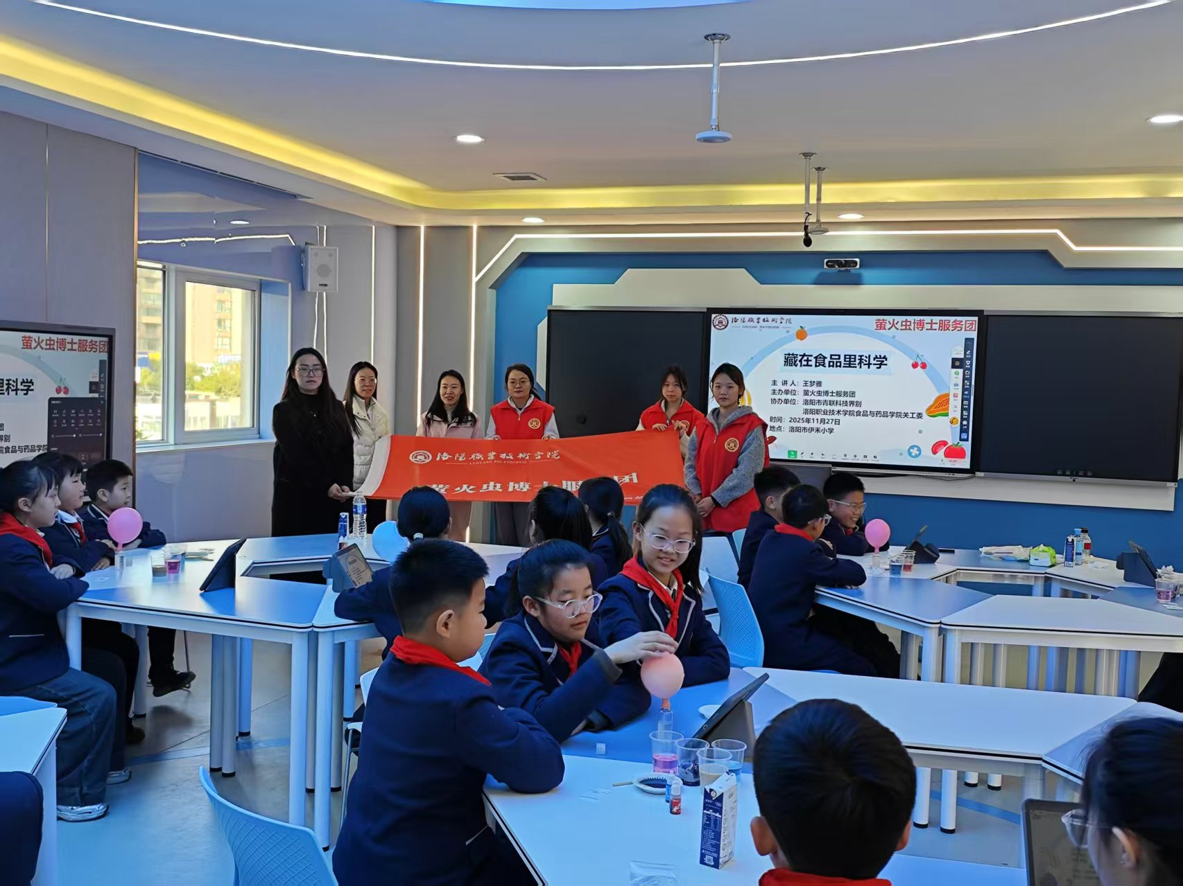 2025年11月27日,在洛阳市青联科技界别、洛阳职业技术学院食品与药品学院关工委的联合支持下,萤火虫博士服务团走进洛阳市伊禾小学,以趣味实验为载体,为孩子们开启了一场沉浸式的食品科学探索之旅。