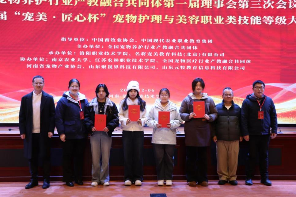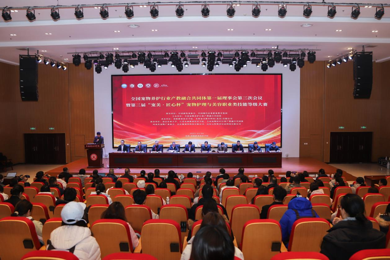 2025年12月16日,全国宠物养护行业产教融合共同体第一届理事会第三次会议暨第三届“宠美•匠心杯”宠物护理与美容职业技能等级大赛在我校举行。