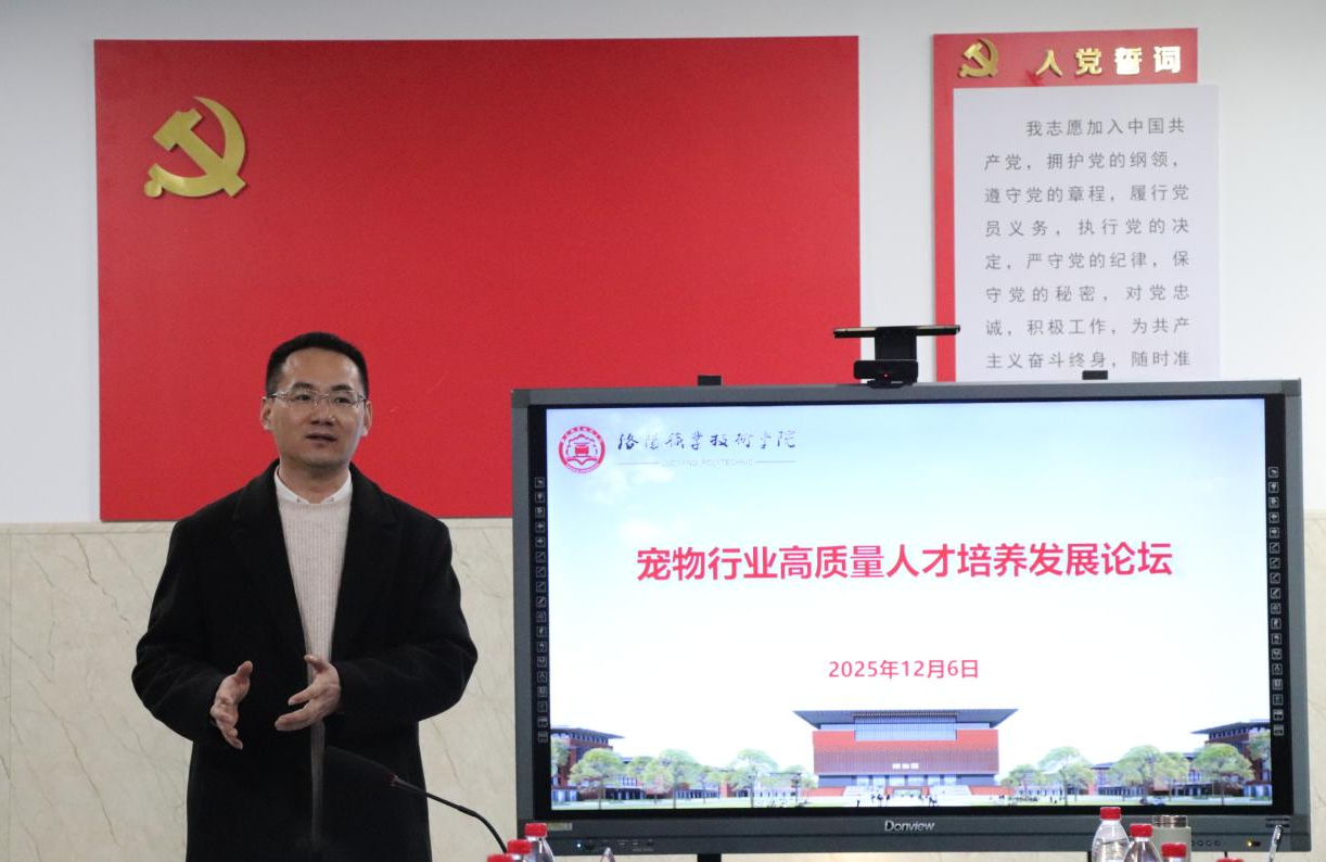 食品与药品学院院长张贺伟教授主持开展宠物行业高质量人才培养发展论坛。来自南京农业大学、温州科技职业技术学院等多所院校的6位专家领导分享了前沿洞察。作为东道主,洛阳职业技术学院名誉院长、教学名师朱金凤分享了其在教学成果奖申报方面的经验。