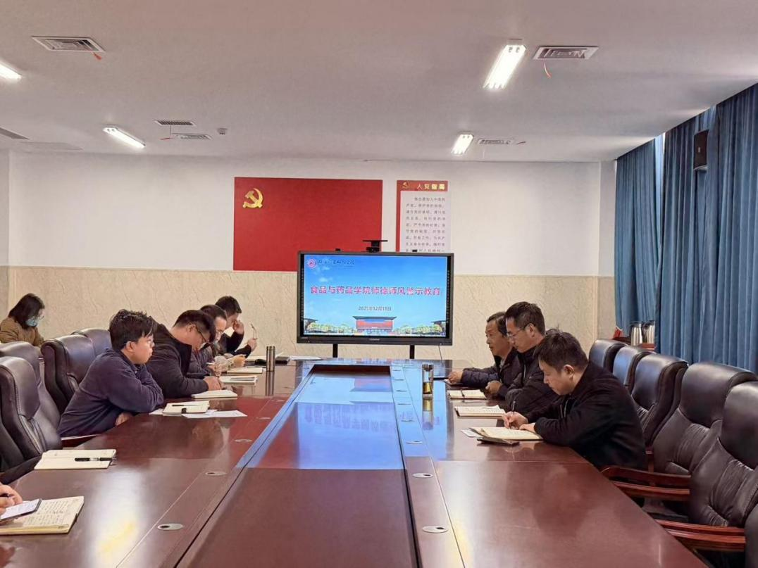 为深入贯彻落实习近平总书记关于教育的重要论述和全国教育大会精神,进一步加强师德师风建设,提升教师思想政治素质和职业道德水平,12月11日,食品与药品学院在7-317会议室召开师德师风警示教育大会。全体教职工参加会议。