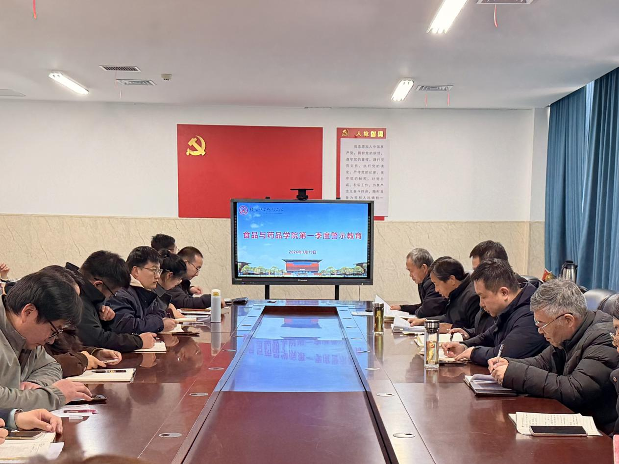3月19日下午,食品与药品学院在7-317会议室组织召开第一季度警示教育专题会议,学院全体教职工参会。